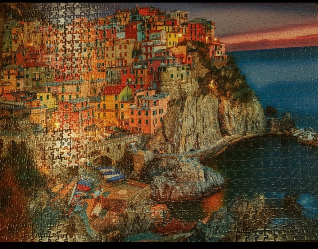 I cannot believe my eyes. In the pictures of the little towns, there it is. The puzzle. An exact photo of the puzzle we put together years ago. In the Cinque Terra. I was speechless and could not believe my eyes. What is this? Why is it here? Is this real???