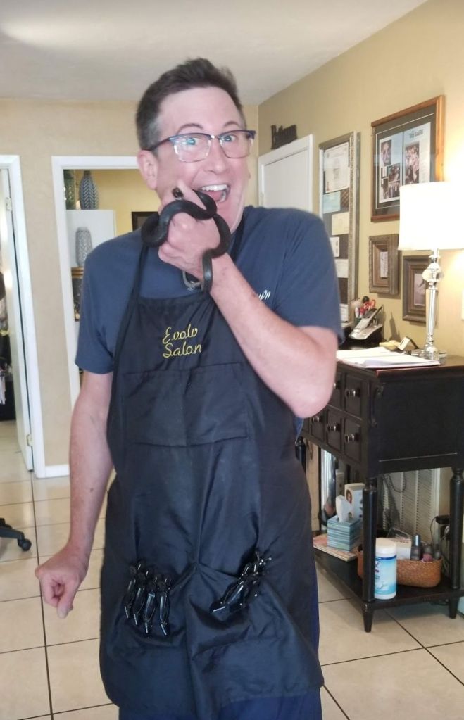 I held on for one more year, all the while hoping for a change, and that change finally came when one of the girls moved away. My Ron came in for a cut and told me “The Other Sharon” was moving to Jacksonville, to which I immediately replied, “what day do I move in?” In November of 2008 I moved to his salon, Evolv Salon, and we’ve been together ever since.
